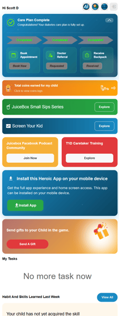 The parents engagement platform: We have developed a simple app that not only provides the parent with the information they need to be a part of the solution, but also connects that parent up with their child. For example, the child can assign "tasks" to the parent that are attached to coins and points in the game once its completed. The "nagging" principle then goes into effect. And vice versa, the parent can assign different tasks or rewards in the game for their child.