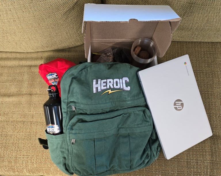 Each participating and funded student will receive a Heroic backpack with the Heroic Laptop, Heroic Journal and the Heroic Farms Game’n Grow system for the home. The laptop will be one of the Heroic Chromebook devices and will become the student’s after 3 years if they hit their learning goals each year. Students will view that laptop as their own property from the start and take care of it accordingly.